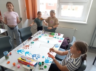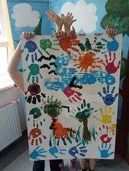 Na następnych zajęciach dzięki baśni „Księżniczka ognia” udaliśmy się do Ameryki Południowej, a konkretnie do Argentyny. Poznaliśmy dużo ciekawostek o Argentynie. Najbardziej jednak podobało się zadanie, w którym uczniowie malowali kamienie przyjaźni oraz tworzyli własne malowidła naścienne rękami.
